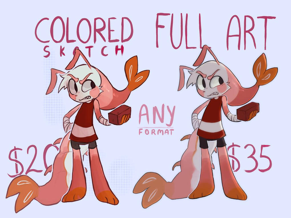 REFERENCE - calculated based on the price lists above. can be a color sketch or full art. basic style or chibi