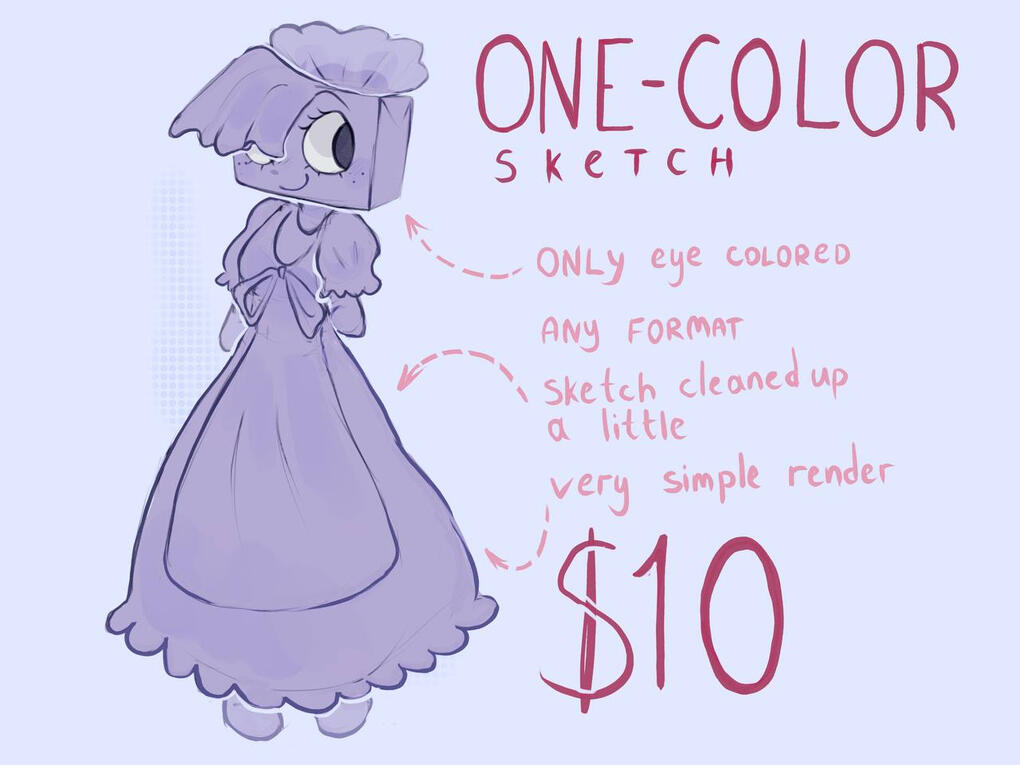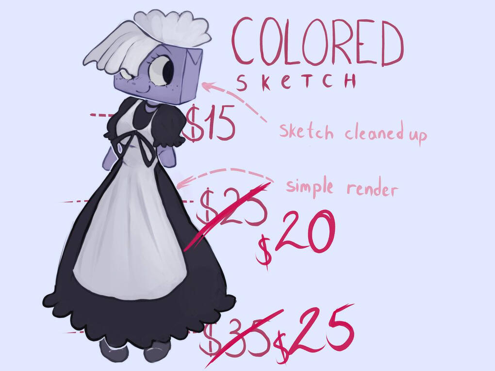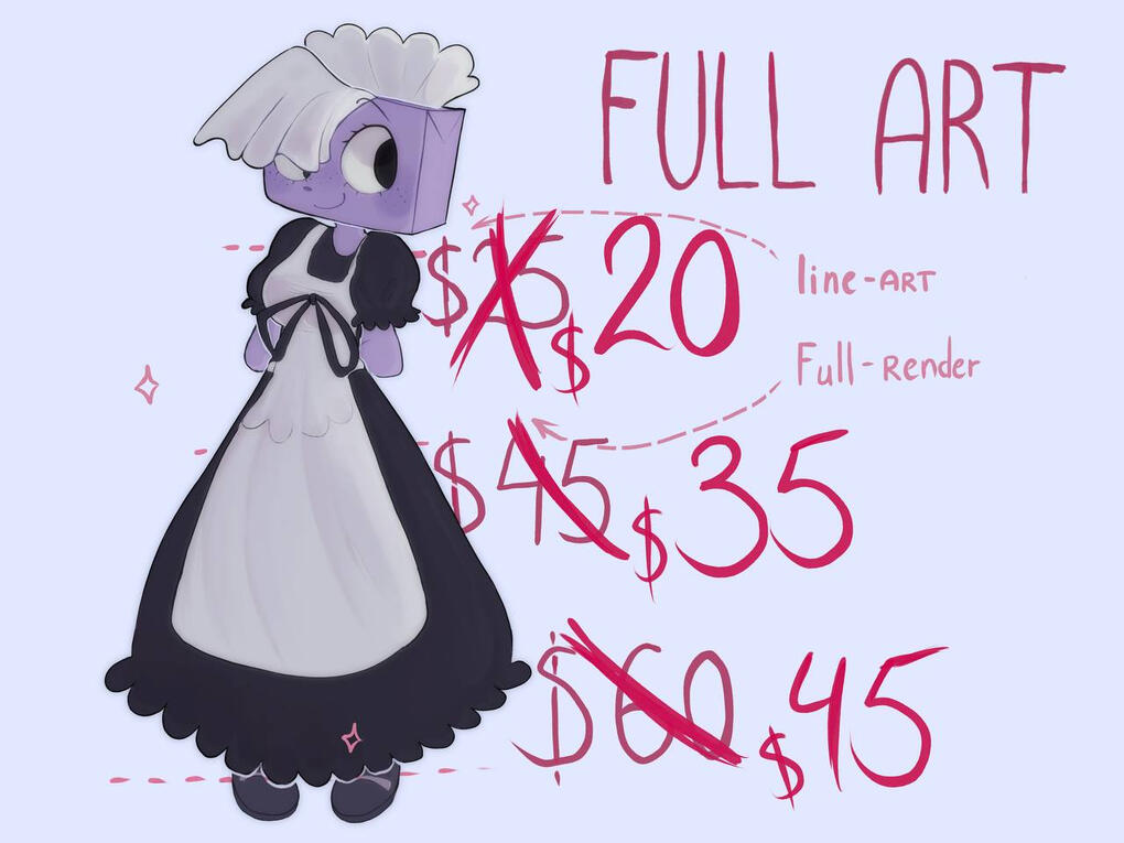 REFERENCE - calculated based on the price lists above. can be a color sketch or full art. basic style or chibi