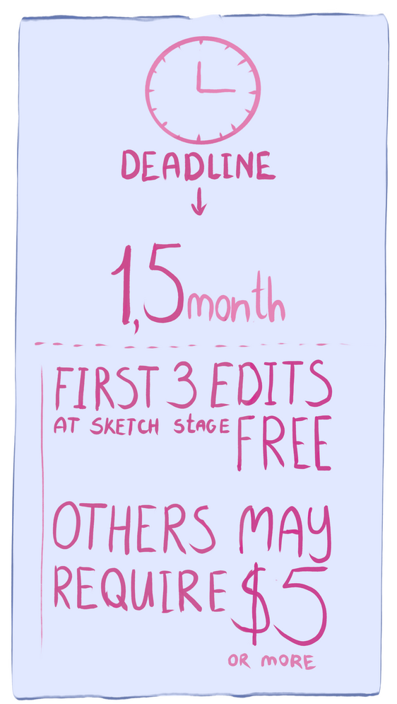 CUSTOM - same thing, only + $5 if you have a detailed enough description, + $15 if you only have rough wishes, vibes for the character
